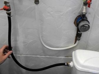 - إذا لم تكن هناك عيوب مرئية للعين على الخرطوم ، فيجب إنزاله في حاوية معدة مسبقًا وفتح الصنبور العادي قليلاً. نتيجة لمثل هذه الإجراءات ، ستلاحظ وجود مناطق تسرب ، حيث سيظهر الماء فيها. يجب استبدال الخرطوم المعيب تحت الماء بآخر جديد والاستمرار في استخدام جهاز السباكة..