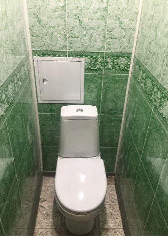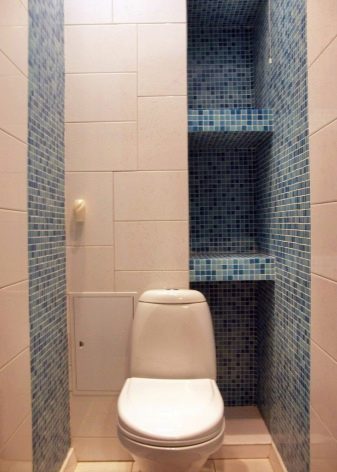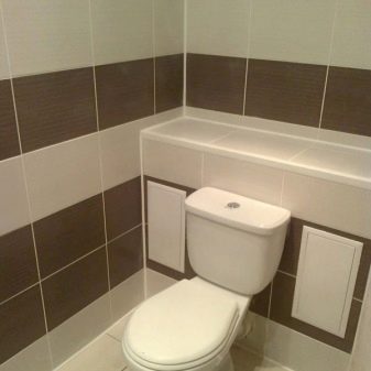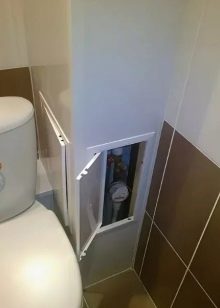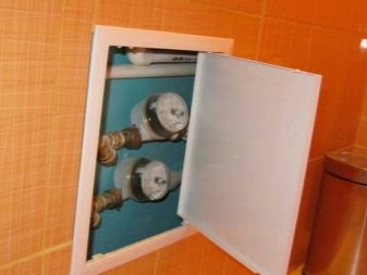 لتكسية صندوق مصنوع من مادة مختلفة ، يمكنك استخدام البلاط وحتى الطلاء. من أجل الوصول إلى الصمامات والتسريبات ، من الضروري عمل نوع من اللوحات. على الرغم من حقيقة أننا نخفي الأنابيب ، فإننا نغلقها ، يجب التفكير في ملء الكوة. إذا كان الصندوق مصنوعًا من الحوائط الجافة والبلاط ، فيمكنك صنعه تفقس بأبواب مفصلية أو اشترِ عنصرًا جاهزًا, على الأبواب التي يمكنك لصق البلاط فيها.