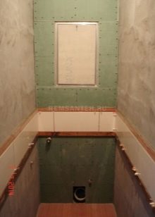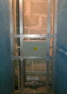يمكنك إغلاق الناهض تمامًا في المرحاض. ولكن في الوقت نفسه ، من الضروري مراعاة: سيستغرق الجدار الخاطئ حوالي نصف متر من المساحة المتاحة. إذا كان المرحاض صغيرًا في البداية ، فقد يصبح استخدام المرحاض أكثر صعوبة بعد خياطته. في هذه الحالة ، سيتعين عليك التوقف عند نموذج معلق وإطار خاص لإصلاح المرحاض..