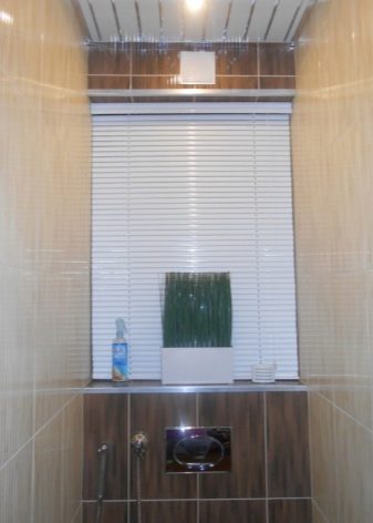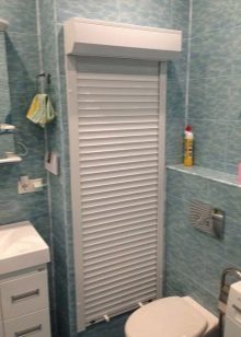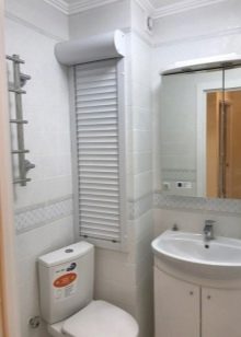 في هذه الحالة ، يتم النظر في الستائر حل عملي. في حالة تعطل إحدى الصفائح ، توفر التكنولوجيا استبدالها البسيط. باستخدام هذا النوع من التمويه ، يمكنك تغطية الجدار الخلفي ليس فقط بالكامل ، ولكن أيضًا جزئيًا. العيب الرئيسي لهذا النوع من إخفاء الأنابيب هو اصفرار الستائر أو تعتيمها ، لذلك ، أثناء التثبيت ، عليك التفكير في استبدالها بسهولة..