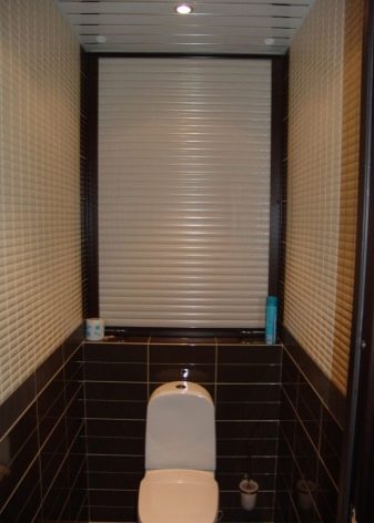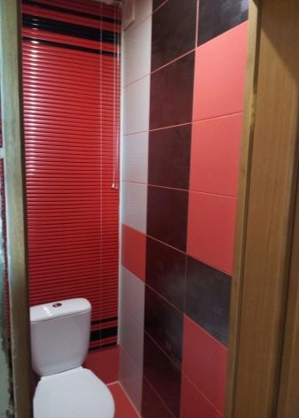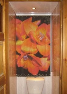 - تصميم مشترك وظيفي للمساحة خلف المرحاض. مزيج من الصندوق والستائر.