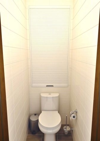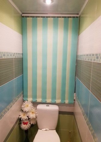 يتم استخدام طريقة إخفاء أنابيب الصرف الصحي هذه في كثير من الأحيان أقل من غيرها.. بالنسبة للكثيرين ، تبدو الستائر غير مناسبة للغاية في داخل المرحاض. ومع ذلك ، بالمقارنة مع الطرق الأخرى ، يتميز هذا النهج باقتصاد المساحة الحرة. إغلاق الأنابيب بالمصاريع الأفضل في الغرف الصغيرة.