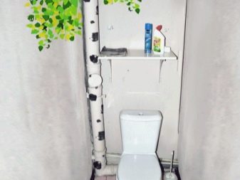بالإضافة إلى ذلك ، يمكن طلاء الأنابيب بألوان متباينة تصور زخرفة عرقية ونمط منمق على السطح. إذا كان المسكن مصنوعًا بأسلوب صديق للبيئة ، فمن المناسب تمامًا جعل الأنابيب في المرحاض تبدو مثل خشب البتولا. في هذه الحالة ، يمكن رسم الأوراق مباشرة على الجدران. إذا كنت لا تحب خيار الزخرفة هذا ، يمكنك اللجوء إلى تقنية decoupage..