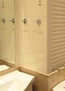 من الأفضل إغلاق نظام الصرف الصحي ، ليس فقط من الناحية الجمالية ، ولكن أيضًا جدار زائف وظيفي. إذا أمكن ، يمكنك تجهيز الأرفف عليها لتخزين الأدوات المنزلية. إذا لزم الأمر ، يمكن طلاء أو تغليف الجدار الخاطئ بالمواد المختارة لإنهاء جميع جدران الحمام. لا يمكنك خياطة الجدار بالكامل فحسب ، بل يمكنك أيضًا خياطة الجزء الذي تظهر فيه الأنابيب.