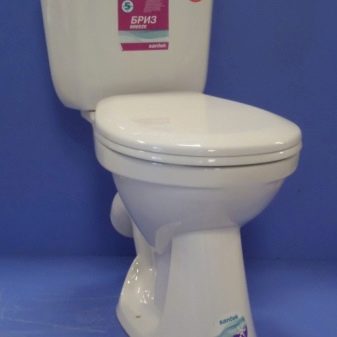 - “نسيم”. يحتوي مرحاض القيشاني على مصدر مياه سفلي وحامل معدني. منفذ وعاء المرحاض من النوع القطري. تتضمن الحزمة تركيبات أحادية الوضع ومقعد من مادة البولي بروبيلين. يتم تنظيم تيار التدفق على أساس قمع دوامة. ارتفاع 71 سم و عرض 35.5 سم.