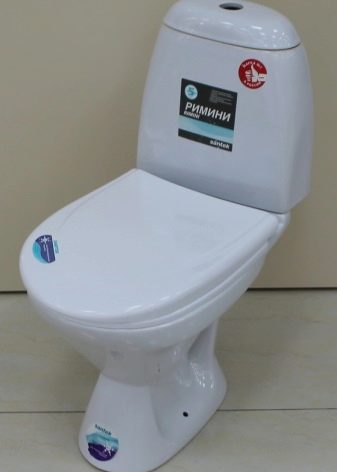 - “ريميني”. شكل هذا المرحاض مربع. الجهاز مصنوع من الفخار والمقعد مصنوع من مادة البولي بروبيلين. قدمت الشركة المصنعة إصدارًا قطريًا أحادي الوضع. أما الأبعاد فهي 740 × 580 × 345 ملم.