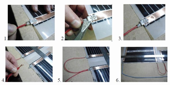 - علاوة على ذلك ، من المهم جدًا وضع أسلاك التثبيت بشكل صحيح وتوصيل الفيلم الحراري بها ؛