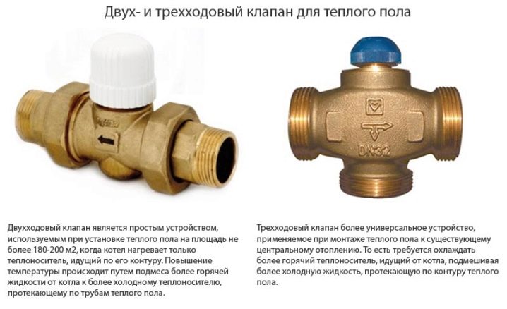 يعتمد نشاط نظام الأرضية المائية بالكامل في وحدة الخلط ، وهي مسؤولة عن تنظيم نظام التسخين المتوسط. هذا يرجع إلى حقيقة أن الرطوبة يتم توفيرها من معدات التدفئة بمستوى تسخين كبير إلى حد ما (حتى 90 درجة) ، ويجب أن يكون هذا المعامل صغيرًا (لا يزيد عن 40 درجة) في سطح الأرض. الرأس الحراري ، الموجود على المخمد ، مسؤول عن الحفاظ على درجة الحرارة العادية لسائل التبريد..