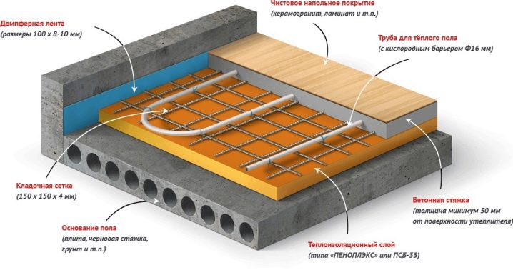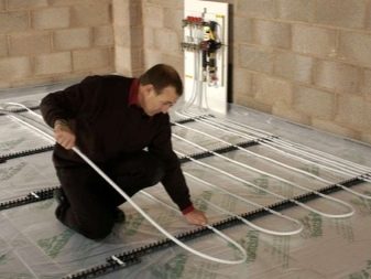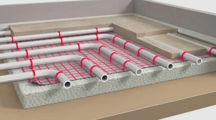 إذا تم بناء المنزل بألواح أرضية ، فلن تضطر إلى عمل ذراع تسوية خشنة ، لأن الطلاء يكاد يكون مثاليًا. خلاف ذلك ، سوف تحتاج إلى عازل حراري – دعامة من الفلين. الخطوة التالية هي وضع أنبوب الماء أو الكابل أو الحصير. كل هذا يتوقف على أي خيار من القائمة التي اخترتها. بعد ذلك ، يتم تنفيذ العمل باستخدام ذراع التسوية الخرساني..