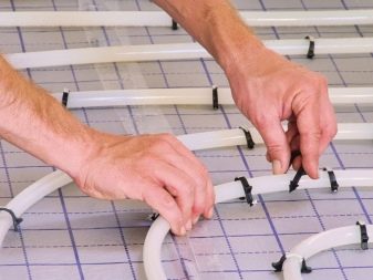 بعد اختيار مخطط التصميم الأنسب ، تحتاج إلى المتابعة مباشرة إلى تنفيذه. أي إجراء العمليات الحسابية ، وشراء المواد ، ووضع خط الأنابيب وفقًا لشكل معين فوق العزل (البوليسترين الموسع والفيلم) ، وباستخدام الأقواس الخاصة ، قم بتوصيل الكفاف بشبكة التعزيز أسفل ذراع التسوية.