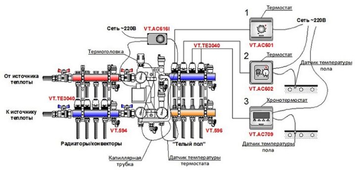 بالنسبة لتركيب ترموستات لأرضية دافئة من نوع مائي ، في معظم الحالات لا يكون ذلك ضروريًا على الإطلاق. تستخدم أمشاط التوزيع بنشاط لهذا النوع من التدفئة الأرضية.. هذا ليس عنصرًا منفصلاً ، ولكنه نظام كامل يتحكم في عمل دوائر تسخين المياه تحت الأرضية. ومع ذلك ، من أجل توفير المال ، لا يزال المالكون يرغبون في رؤية مستشعرات درجة الحرارة على أنظمتهم..