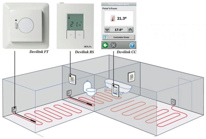 من بين مجموعة متنوعة من منظمات الحرارة للتدفئة الأرضية ، يمكن تمييز عدة فئات رئيسية: