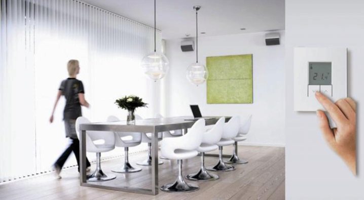 بالإضافة إلى ذلك ، عند استخدام مثل هذا الجهاز ، يتم تنظيم درجة تدفئة الأرضية. لهذا السبب يتم استخدامها على نطاق واسع في أنظمة المنزل الذكي. منظمات الحرارة القابلة للبرمجة قادرة على التعرف على وجود أو عدم وجود الأشخاص في الغرفة في الوقت الحالي.