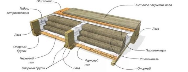 من السهل غلق الأرضية الخشبية بألواح من كلا الجانبين. يتيح لك التثبيت الموثوق به تجهيز “فطيرة” من العزل والبخار والعزل المائي. يمكن صنع الهيكل متعدد الطبقات على شكل أرضية عائمة. في هذه الحالة ، لن يكون لها اتصال مباشر بقاعدة وجدران المنزل..