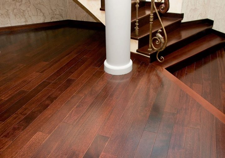 بميزانية غير محدودة ، يختارون أجمل المواد وأكثرها متانة وكثافة من دول أجنبية. الأشجار الغريبة الموجودة في الغابات الاستوائية المطيرة لها خصائص فريدة. يمكن أن تتحمل الرطوبة القوية ، كما أنها سهلة المعالجة ومقاومة للتآكل. بالإضافة إلى ذلك ، تتميز الألواح المصنوعة من هذه الأشجار بألوان جميلة. على سبيل المثال ، يمكن أن يكون خشب Merbau برتقالي ذهبي أو بني محمر. يمكن صنع أرضية أرجوانية باستخدام خشب الورد. وتأتي الأرضيات المخططة من شراء خشب زبرانو باهظ الثمن..