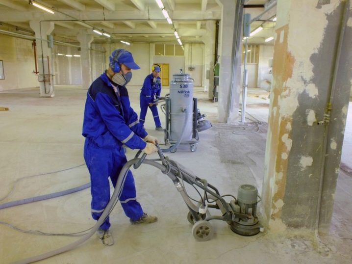 تتمثل الخطوة التالية في صنفرة الأرضية باستخدام فوهات وعجلات ، يتراوح حجم حبيباتها بين 40-100 حصى. يتضمن هذا الإجراء إزالة طبقة كبيرة ، والتي بسببها يكتسب سطح الخرسانة أقصى قوة. يمكن حل المشكلة قيد النظر باستخدام الأدوات اليدوية (على سبيل المثال ، طاحونة الزاوية في المنزل) ، والأجهزة الأكثر إنتاجية – حتى التركيبات الصناعية ، إذا كان استخدامها مبررًا.