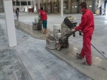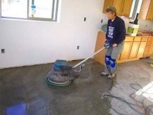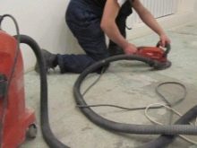 تتمثل الخطوة التالية في صنفرة الأرضية باستخدام فوهات وعجلات ، يتراوح حجم حبيباتها بين 40-100 حصى. يتضمن هذا الإجراء إزالة طبقة كبيرة ، والتي بسببها يكتسب سطح الخرسانة أقصى قوة. يمكن حل المشكلة قيد النظر باستخدام الأدوات اليدوية (على سبيل المثال ، طاحونة الزاوية في المنزل) ، والأجهزة الأكثر إنتاجية – حتى التركيبات الصناعية ، إذا كان استخدامها مبررًا.