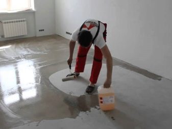 أولاً ، تحتاج إلى إزالة جميع مخلفات البناء باستخدام مكنسة كهربائية للبناء أو على الأقل مكنسة. يجب تجفيف الأسطح الرطبة. إذا كانت هناك آثار للورنيش والدهانات والمنتجات البترولية الأخرى على القاعدة ، فمن الضروري تقليلها ، وإلا فلن يتم ضمان مستوى كافٍ من التصاق القاعدة وذراع التسوية ، مما يقلل من مورد الأرضية المصبوبة.