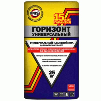 خلطات التسوية الذاتية لها نسبة السعر والجودة المثلى. “الأفق”. التطبيق الرئيسي لمخاليط هذه العلامة التجارية هو المعطف الخفيف. يجب ألا تتجاوز الطبقة القصوى لذراع التسوية 10 مم. تتميز الأرضيات المصنوعة باستخدام هذه الخلطات بمستويات عالية من التكافؤ ، ومقاومة الرطوبة ، والتجفيف السريع (6 ساعات). يمكن وضع أي أغطية عليها ، من الخزف الحجري إلى المشمع..