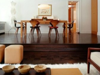 هذا ينطبق أيضا على الأرضيات. يُنصح باستخدام مواد داكنة أحادية اللون في مثل هذه المجموعات ، حيث لا توجد إدخالات متناقضة أو أي أنماط ، حتى تلك الدقيقة..