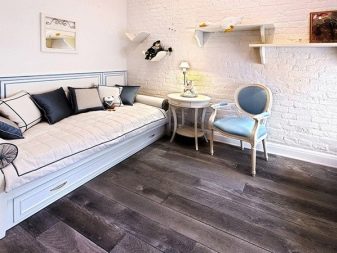 - من السهل مطابقة معظم الظلال الداكنة مع العديد من الألوان. هذا يتحدث عن تساهل الأرضية المظلمة. سيتمكن كل مالك من وضع أثاث فاتح متباين وتفاصيل زخرفية عليه..
