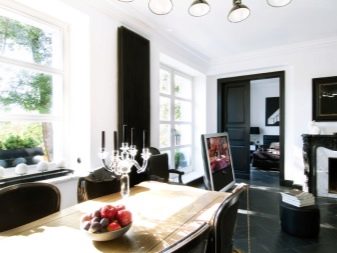 في الداخل مع الأرضيات المظلمة ، يجب التفكير في كل التفاصيل. وهذا لا ينطبق فقط على زخرفة الجدران والأثاث ، ولكن أيضًا على عناصر مثل الأبواب والنوافذ..