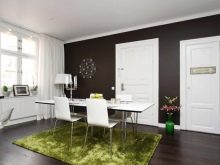 يمكن التغلب على هذه الأرضية بسهولة وفعالية ليس فقط بزخرفة الجدران الخفيفة ، ولكن أيضًا بسجادة رقيق عادية في الشقة. على سبيل المثال ، بالقرب من أريكة بنية ناعمة مخملية ، ستجد سجادة ناعمة مستطيلة الشكل ذات ظل رمادي ناعم مكانها. يجب وضع طاولة زجاجية سوداء عليها. قد تبدو المجموعة بسيطة للغاية ، لكنها ستبدو رائعة ، خاصةً إذا كانت محاطة بجدران من الشوكولاتة ذات اللون الأبيض الثلجي ولهجة..