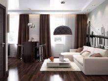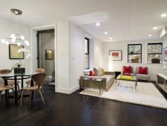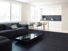 - بوجود أرضيات مظلمة في الغرفة ، يمكنك اللعب بفعالية مع التناقضات ، وتشكيل مجموعات أصلية. على سبيل المثال ، على خلفية صفائح الشوكولاتة الداكنة ، سيبرز الأثاث الحديث على إطار من الكروم مع تنجيد أبيض ثلجي بشكل فعال. لا يتم تجاهل مثل هذه التناقضات أبدًا وتبدو مثيرة جدًا للاهتمام..