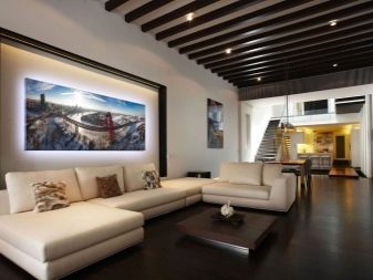 - لا يحظر في مثل هذه المجموعات تزيين الجدران بمواد داكنة. على سبيل المثال ، إذا كنت تبحث عن خلفيات مناسبة ذات ألوان كثيفة وعميقة ، فإن الخيارات المثيرة للاهتمام بزخارف سوداء كبيرة مناسبة تمامًا لك. أما بالنسبة للوحات القماش العادية ، فيمكن أن يكون لونها من الرماد أو البني أو الكوبالت. في مثل هذه التصميمات الداخلية ، يوصى باستخدام الجدران والألواح ذات الإضاءة الخفيفة..