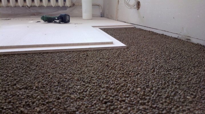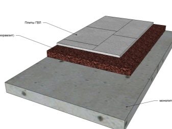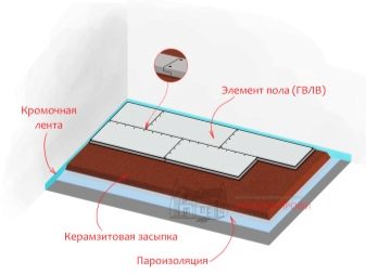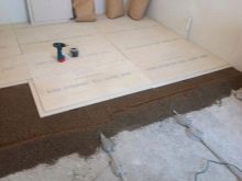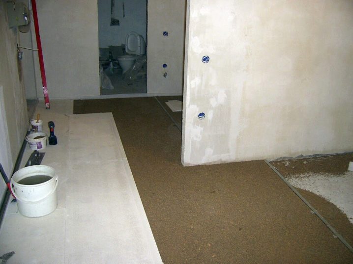 - عناصر الأرضية. يتكون البناء من طبقتين من الألياف الجبسية المقاومة للرطوبة.