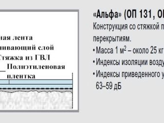 - سكريد ألفا. يبقى على سطح مستو. يُسمح بالاختلافات الأساسية التي تصل إلى 30 ملم. وهي تشتمل على شريط مثبط ، بولي إيثيلين ، صفائح ألياف الجبس. لها وزن خفيف حوالي 25 كجم.