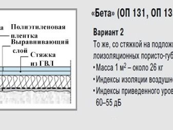- سكريد فيجا. يتضمن هذا النوع من ذراع التسوية الطين الممتد وألواح ألياف الجبس وشريط التخميد. هذا الطلاء له خصائص ممتازة للعزل الحراري ، عازل للصوت ، القوة. كتلته حوالي 45 كجم..