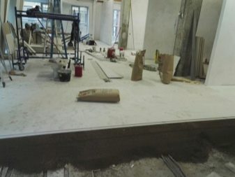 قبل البدء في العمل ، من الضروري الاستعداد بعناية لإصلاح الأرضيات. لذلك ، بالإضافة إلى المكونات الرئيسية لذراع التسوية – الحشو السائب وألواح ألياف الجبس ، ستحتاج إلى فيلم بولي إيثيلين في حالة الخرسانة أو الورق البيتوميني في حالة الخشب ، بالإضافة إلى شريط مثبط ، وشريط حافة ، بانوراما ، غراء ، مسامير ، مثقاب ، شريط قياس ، مسطرة ، مسامير ، معجون ، سكين. يمكن استخدام مكونات ومواد مالئة إضافية حسب خصائص السطح..