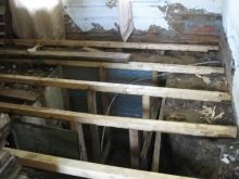 خلاف ذلك ، إذا لم يكن الطابق السفلي مرتفعًا بدرجة كافية ، لعزل أرضية الطابق الأول ، فسيكون من الضروري إزالة لوح الأرضية إلى السجل أو أي هيكل داعم آخر.