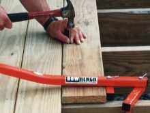 يمكنك استخدام قضيب نقب أو مسمار مسطح بطرف مسطح. ليست هناك حاجة لمحاولة رفع اللوح بأكمله مرة واحدة ، وتثبيته بفأس في مكان واحد فقط ، وهذا يمكن أن يؤدي إلى تقسيم الخشب.