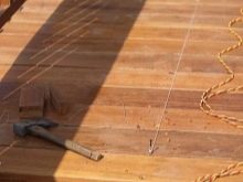 يستخدم بناة “المدرسة القديمة” فأسًا لتفكيك الألواح: يقومون بتثبيتها بعناية بين السجل واللوح ، دون إتلاف أحدهما أو الآخر ، وبتأثير بسيط يرفعون حافة اللوحة.