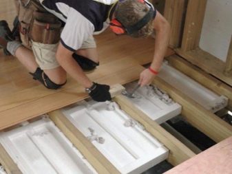 - مع تفكيك. في هذه الحالة ، يتم تمييز الألواح وتفكيكها وإخراجها من الغرفة التي يتم إصلاحها فيها. يتم تثبيت العزل بين الروافد الموجودة ، ثم يتم تثبيت الألواح الأرضية مرة أخرى.