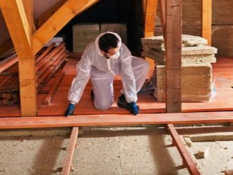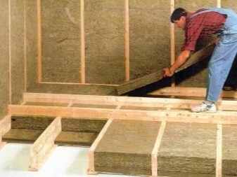 يتم وضع مادة عازلة للحرارة في الفراغ بين الفواصل. عند العزل من الأعلى ، لم يعد الاختيار يقتصر على عزل الألواح. في هذه الحالة ، من الممكن عدم وضع الألواح على الأرض ، ولكن الخشب الرقائقي بسمك كافٍ ، ثم ستستمر الأرضية لفترة أطول قليلاً.