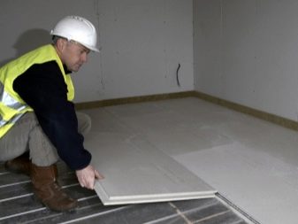يتم وضع طبقة عازلة (فيلم) أولاً تحت الأرضيات الدافئة ، ثم من الضروري تجنب فقد الحرارة – لذلك يتم وضع طبقة من البوليسترين الموسع. وعندها فقط يتم وضع عناصر التسخين ، وبعد ذلك يتم سكبها بعلبة التسوية.