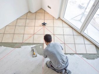 في الحمام والمطبخ ، يكون الغطاء الفعلي هو البلاط أو الخزف الحجري. في هذه الحالة ، لا يلزم وجود ذراع تسوية مسطح تمامًا. طبقة خشنة كافية. يمكن تحقيق الحد الأدنى من الانحرافات باستخدام لاصق البلاط.