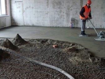 في منزل خاص من الضروري تجنب اختراق الرطوبة من التربة قدر الإمكان. للقيام بذلك ، عادة ما يقومون بترتيب وسادة رملية أو طينية ممتدة في الطابق السفلي ، ثم يتم سكبها بالخرسانة ، ومقاومة للماء مسبقًا. لا يمكن أن توجد المباني الصناعية والمستودعات والجراجات وورش العمل إلا بطبقة خشنة من الخرسانة ، نظرًا لأن المكون الزخرفي ليس مهمًا هنا ، ولكن الموثوقية والقدرة على تحمل الأحمال الثقيلة فقط مهمة..