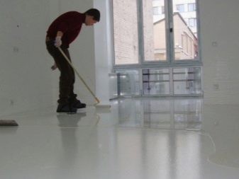 من بين أمور أخرى ، تؤثر جودة التعبئة بشكل مباشر على وقت المعالجة. إذا تم تطبيقه بشكل غير متساوٍ ، فسوف تجف المناطق الرفيعة بشكل أسرع من المناطق السميكة ، مما قد يتسبب في تصلب الأرضية لمدة 10-12 ساعة. إذا تم اختيار صفح كمادة التشطيب ، ثم يجدر النظر مسبقًا في القاعدة التي سيتم تركيبها تحتها.