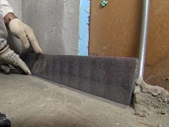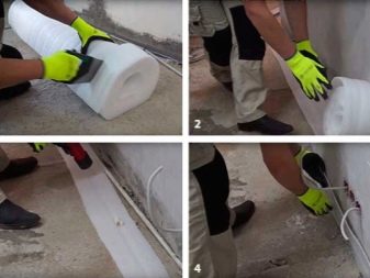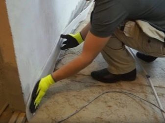إذا كانت هناك طبقة لاصقة على الشريط ، فيكفي فقط الضغط عليها بالجانب اللاصق على الحائط على طول محيط الغرفة بالكامل. الخيار مع “تنورة” ، الانحناء على الأرض مثل هذا, بحيث لا يمكن أن يسقط أي سائل (رطوبة) تحته.