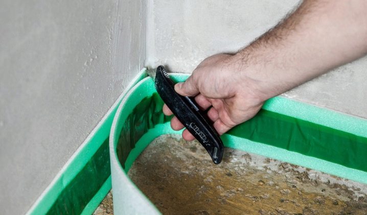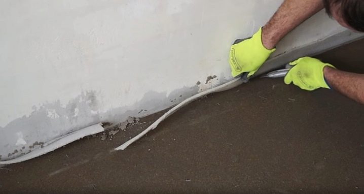 وفقًا لقواعد أعمال البناء الداخلية ، بعد أن يصلب خليط الخرسانة الخاص بذراع الأرضية ، يجب أن يمتد شريط الحافة بمقدار 2 سم عن السطح ، ويتم قطع بقاياه بسكين كتابي عادي.