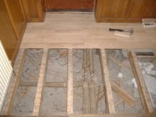 إذا حكمنا من خلال تعليقات أولئك الذين وضعوا أرضية اللسان والأخدود سابقًا ، فإن هذا هيكل موثوق به ومستقر إلى حد ما. من المتطلبات التي لا غنى عنها لاستخدامها في الحمامات والغرف الرطبة الأخرى استخدام الصنوبر (أنواع الأخشاب الأخرى غير مناسبة بشكل قاطع).