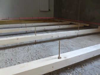يمكن وضع منتجات اللسان والأخدود الخشبية إما على جذوع الأشجار أو على دعامات خاصة (والتي سترفع الطبقة العليا من الأرضية بمقدار 7 سم فوق القاعدة). ولكن إذا كانت الغرفة ذات سقوف منخفضة ، فسيتعين عليك وضع الخشب الرقائقي هناك حتى لا تمتص الكثير من الارتفاع. يتم استخدام عوارض الدعم عندما تكون الأرضية السفلية غير مستوية للغاية. يبلغ سمك كل شعاع 10 سم على الأقل.