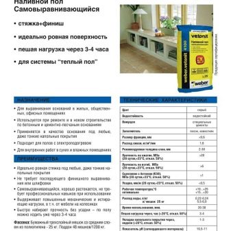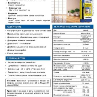 حتى الآن ، يحتل التكوين بجدارة موقع أكثر الوسائل شيوعًا لتسوية الأرضية. المكون الرئيسي للمادة هو الاسمنت. يستخدم الحجر الجيري كعنصر إضافي. يوصي خبراء الإصلاح بتطبيق المركب على الأرضية الخرسانية النظيفة..