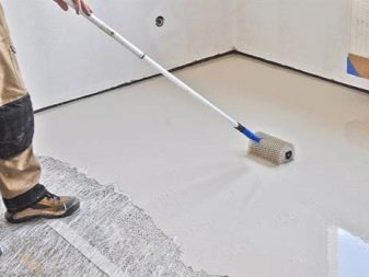 قبل الصب ، يتم تحضير الأرضية باستخدام بكرة دهان تقليدية بطول المقبض. يمكنك استخدام علامة تجارية أولية “فولما يونيفرسال” أو أي علامة تجارية أخرى لاختراق عميق في الأعمال الداخلية. يكفي معالجة الأسطح الملساء مرتين ، مسامية على الأقل 2-3 مرات بفاصل 4 ساعات. لا تحتاج إلى البدء في الصب إلا بعد أن يجف التمهيدي تمامًا..