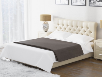 - تصميم. توجد نماذج لاكونية مصنوعة من الخشب بنسبة 100٪ ومفروشات من القماش – بالكامل أو فقط على ظهر السرير ؛