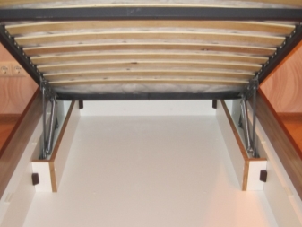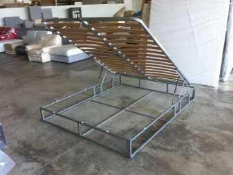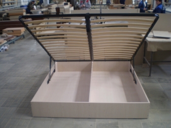 جهاز السرير مع آلية الرفع هو كما يلي: تتكون القاعدة من صندوق وصندوق تخزين بالداخل ، في الأعلى – (في كثير من الأحيان) قاعدة لتقويم العظام مع شرائح وآلية رفع. هذا الأخير في نفس الوقت يحمل جزأين من المخزون معًا ويضمن وظائفه. تحتوي الموديلات الحديثة على قاعدة تقويم العظام: إطار معدني بصفين من الصفائح – ألواح بتولا منحنية صغيرة. تأخذ الشرائح وزن المرتبة والشخص وتوزع بشكل صحيح الأحمال على هيكل السرير.